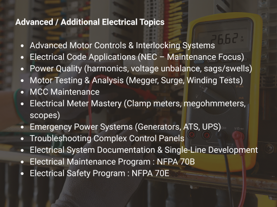 ELECTRICAL TRAINING SUBJECT AREAS